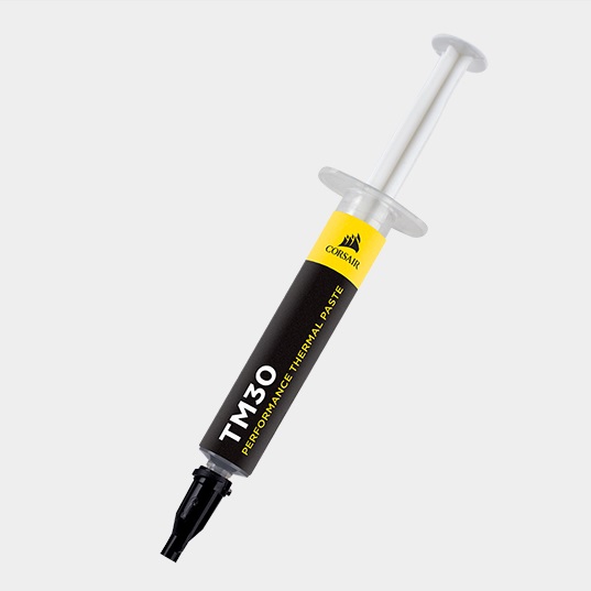 La pasta térmica CORSAIR TM30 le ayuda a obtener el máximo rendimiento de su PC, con un material térmico de óxido de zinc premium de baja viscosidad y fácil de aplicar.