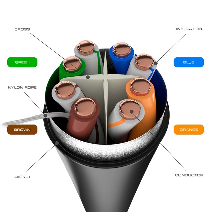 - Cuenta con protección contra la intemperie y otros factores externos, mediante un revestimiento de polietileno de alta densidad (HDPE): Tipo CMX, 23AWG x 4P ANSI/TIA-568-C.2: Cable horizontal (Conductor sólido).