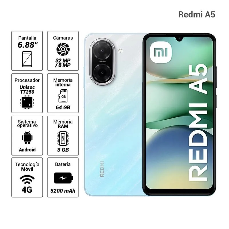 CELULAR XIAOMI REDMI A5 UNISOC T7250 3GB,64GB,6.88″,ANDROID 15,BLUE