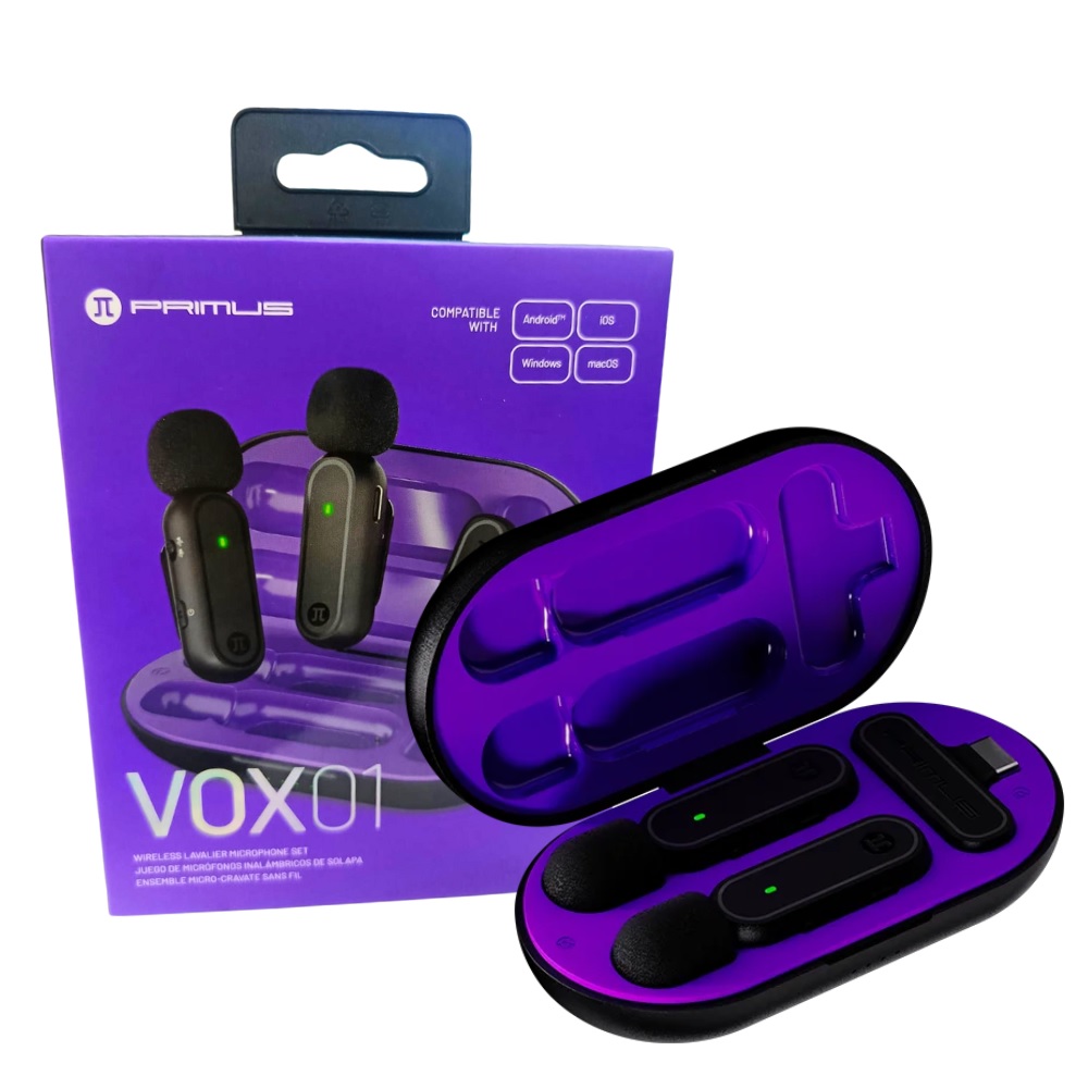 MICROFONO PRIMUS DUAL DE SOLAPA INALAMBRICO CON ESTUCHE DE CARGA USB TIPO C BLACK
