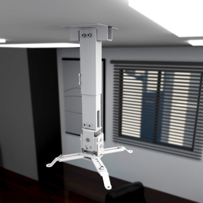 Este soporte, el cual es compatible con casi la mayoría de los proyectores de datos y vídeos para sistemas de cine en casa de 10kg o menos, es un accesorio muy fácil de instalar. La columna regulable ahuecada al centro permite ocultar los cables en su interior para una instalación más estética. Al contar con patas extensibles y una placa con una configuración única, el KPM-580W se puede adaptar a distintos patrones de montaje, aparte de ser compatible con casi todos los modelos de proyectores que se venden en la actualidad.