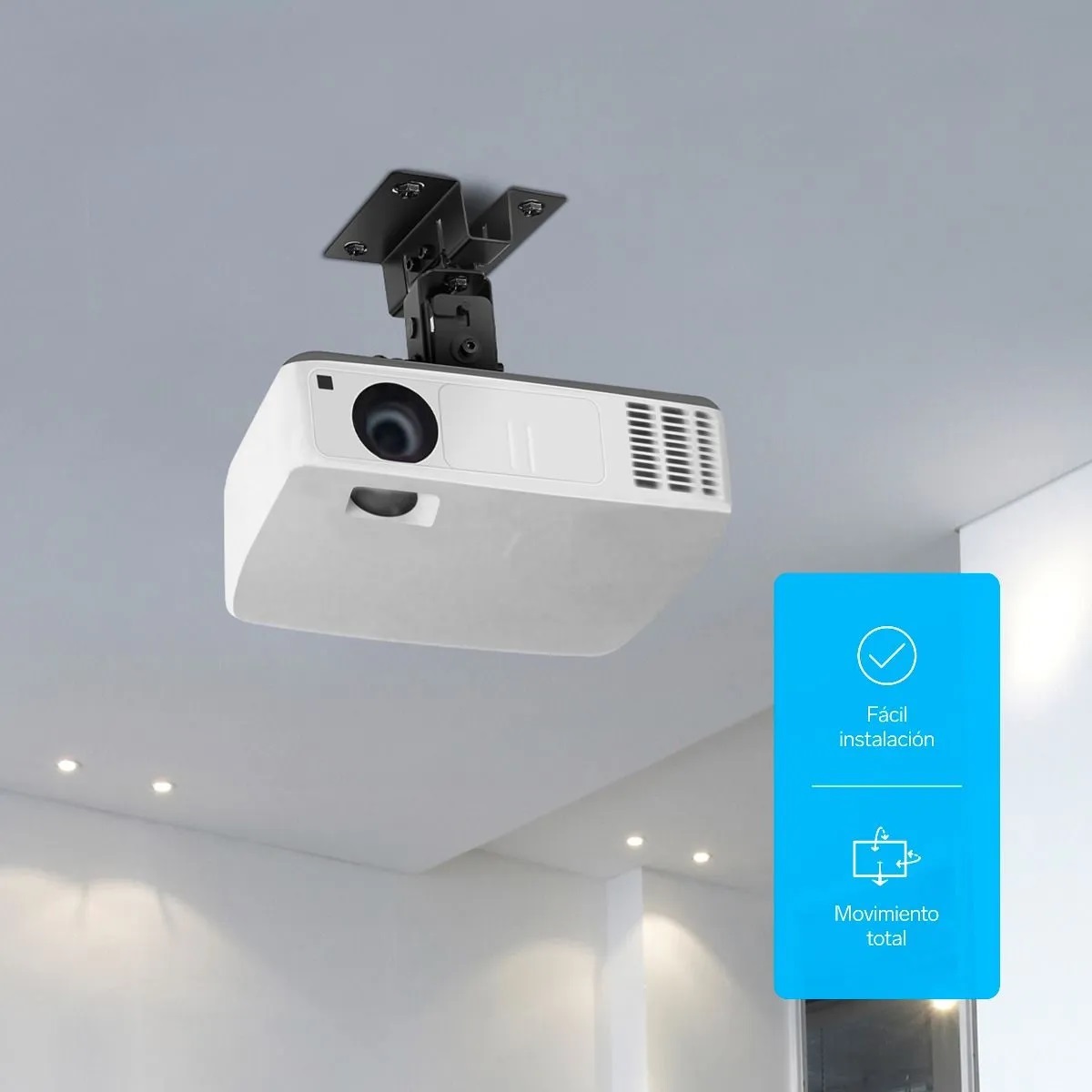 Con este soporte, instala tu proyector en el techo y ten el espacio óptimo para llevar acabo tus reuniones de trabajo o de entretenimiento. Tiene un sistema de agarre por medio de brazos extensibles; gracias a esto, es compatible con proyectores de diversos tamaños de la marca Epson*. Además, incorpora una doble articulación que le da movilidad para ajustar la posición de la proyección en el ángulo más adecuado. Es de excelente calidad; está fabricado en acero al bajo carbón que le brinda alta resistencia, y se incluyen los tornillos y taquetes necesarios para instalarlo.