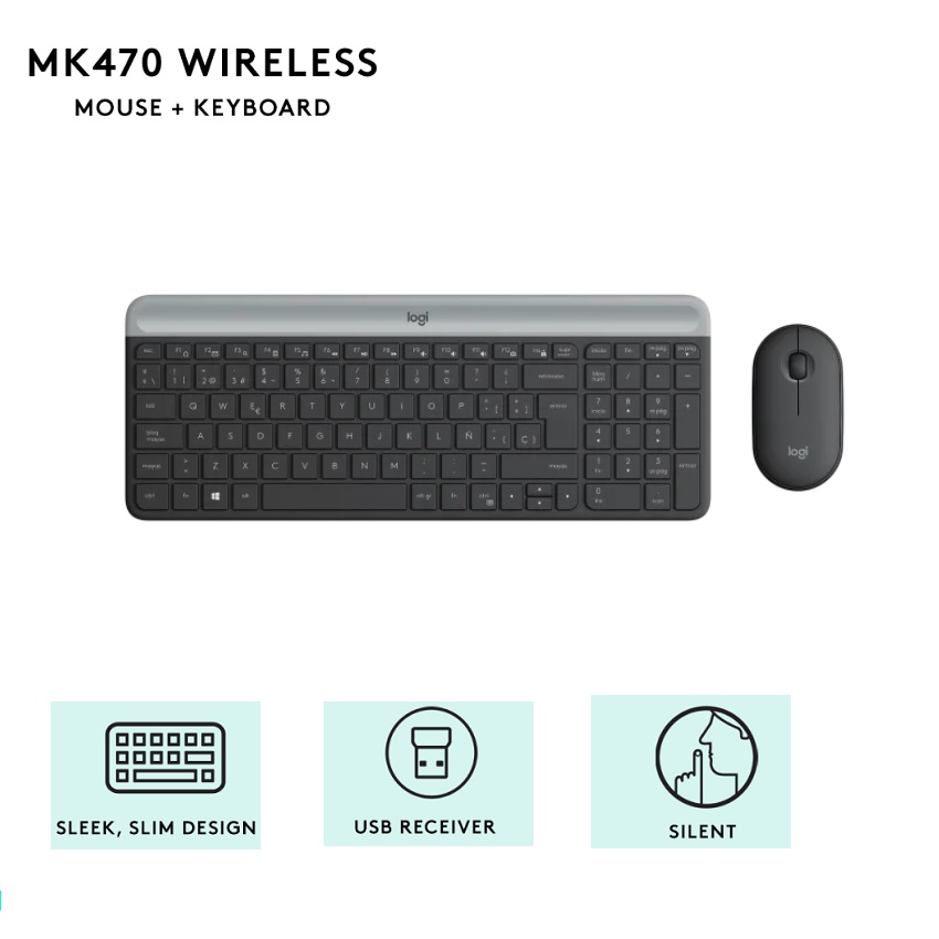 Logitech MK470 Crea un espacio minimalista, moderno y silencioso, compuesta de un teclado y un mouse de diseño avanzado perfectos para hacer las cosas con eficacia. El fino perfil y el diseño minimalista del teclado y el mouse contribuyen a una presentación de escritorio despejada