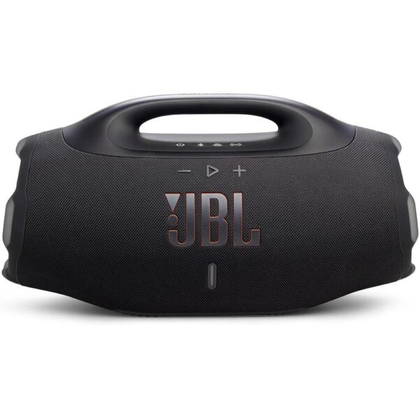Disfrútalo a tú manera y en cualquier lugar. El nuevo JBL Boombox 4 es más grande, más audaz y mejor que nunca, con un potente sonido JBL Pro que se mantiene siempre alto y claro, con graves profundos y contundentes. AI Sound Boost analiza la música en tiempo real y ajusta el sonido para ofrecer más potencia con menos distorsión, incluso cuando se sube al máximo. Incorpora dos altavoces más grandes, dos altavoces de agudos y tres radiadores pasivos, para que cada canción suene más potente y nítida. Cuando quieras afinar las vibraciones, solo tienes que cambiar entre los ajustes de Bass Boost profundo o vibrante para adaptarlo a nuestro estado de ánimo. Hemos renovado el diseño clásico del Boombox: es más grande pero más ligero, para que podamos llevarlo donde quiera que vaya la fiesta: a la playa, a la calle o al jardín. Es resistente al agua y al polvo (IP68), así que el clima nunca será un impedimento. Y, con hasta 34 horas de reproducción (gracias a Playtime Boost), tendrás todo lo necesario para disfrutar durante todo el día. Con el JBL Boombox 4, puedes llevar tu energía allá donde vayas.